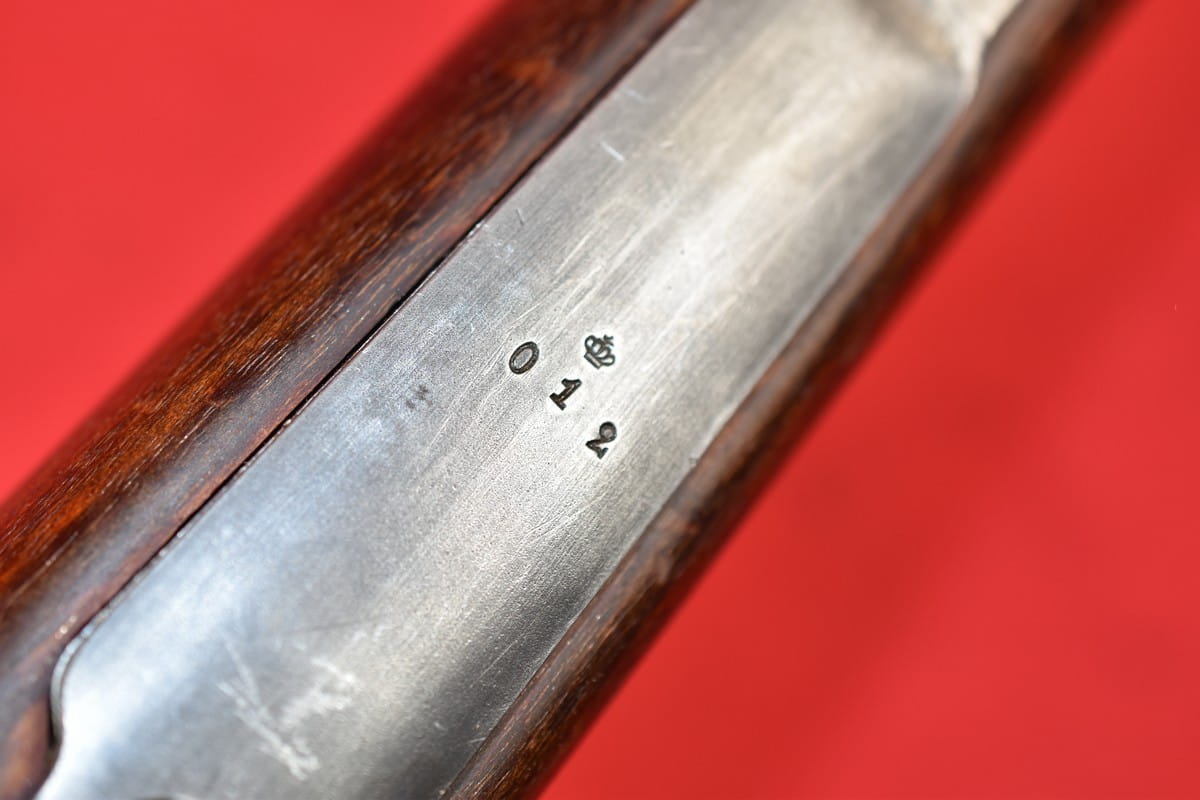 Na kolbie obecna okrągła tabliczka z opisem stanu technicznego broni. Jest mocowana na zwykły wkręt - podczas wybierania egzemplarza dla siebie radzimy w ogóle na nią nie patrzyć.