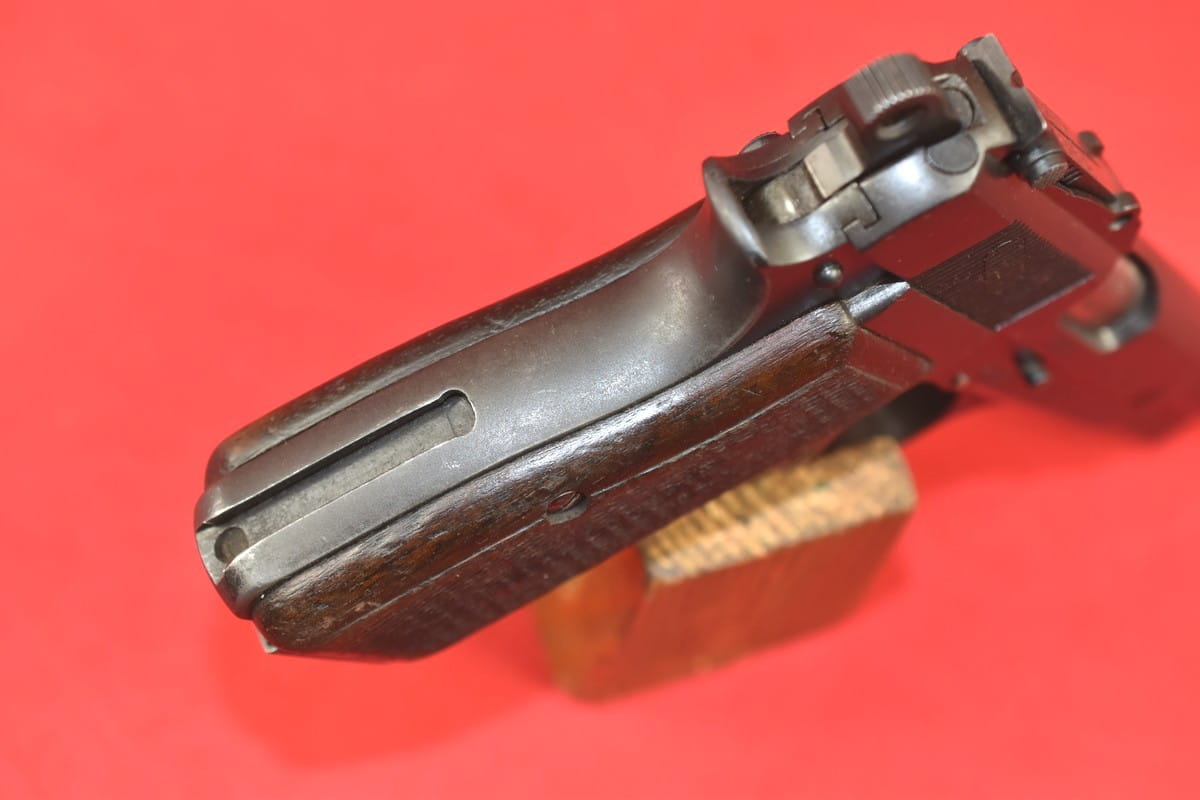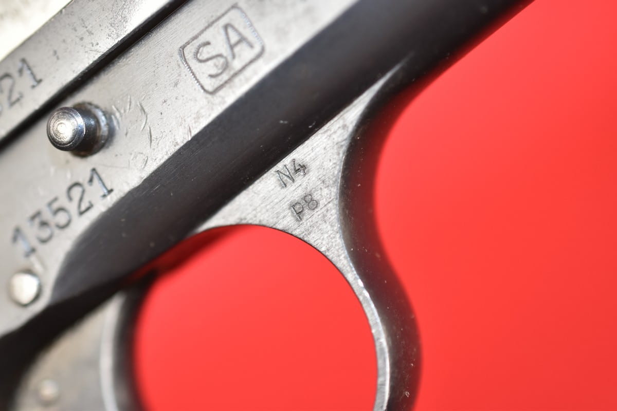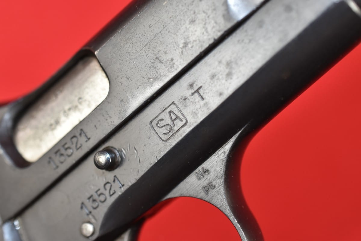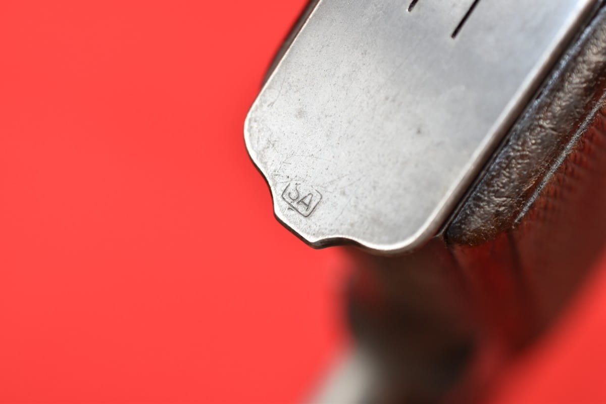 Egzemplarz w 100% oryginalny i zgodny numerycznie. Magazynek także oryginalny (nie powojenny), również ze stemplem "SA". Okładziny (od wewnątrz) są oczywiście koloru czerwonego.