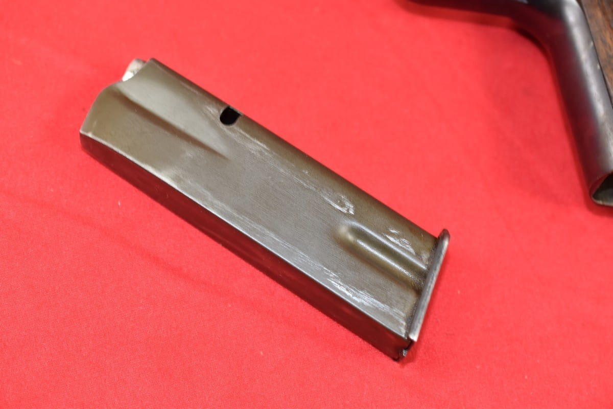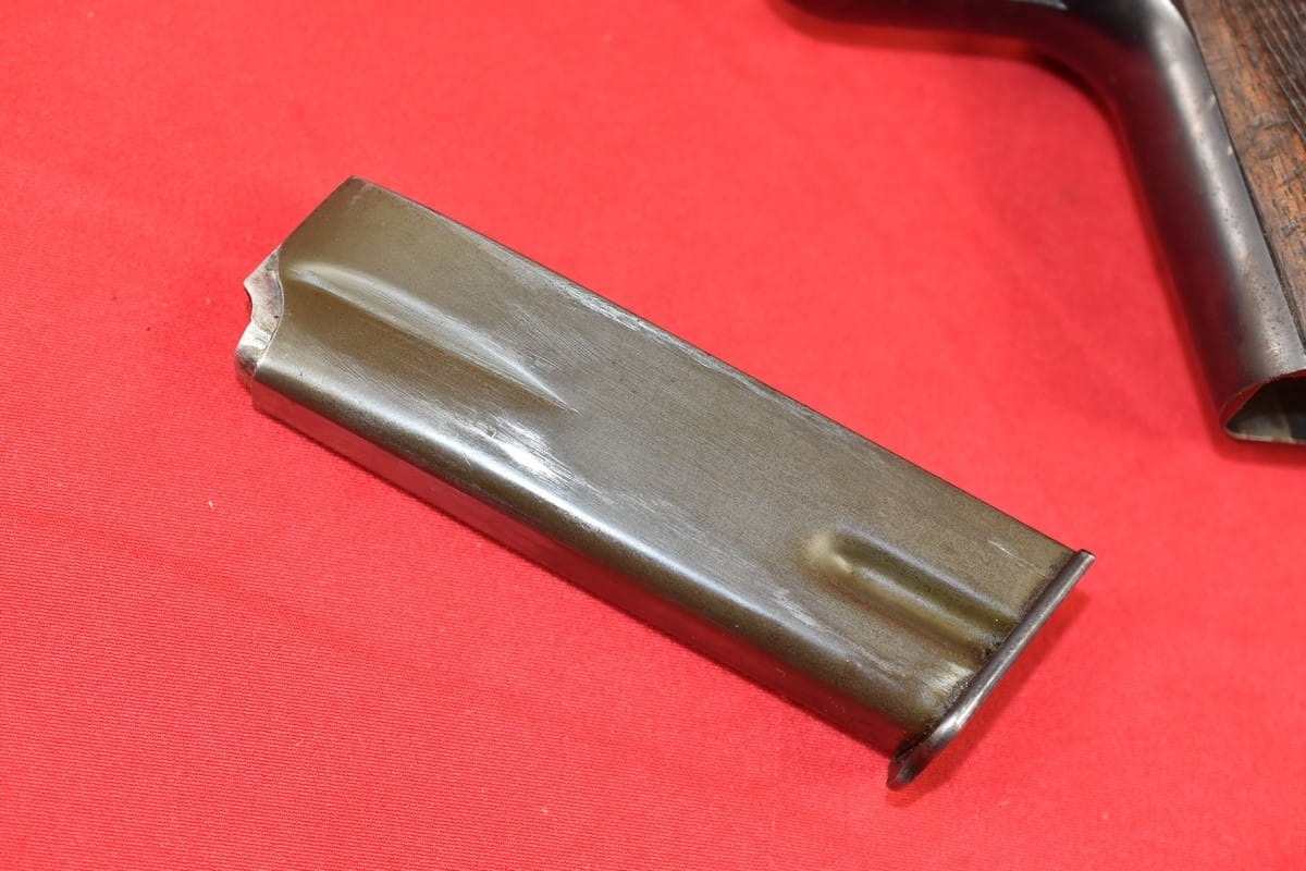 Egzemplarz w 100% oryginalny, zgodny numerycznie. Magazynek także oryginalny (nie powojenny). Okładziny (od wewnątrz) są oczywiście koloru czerwonego.