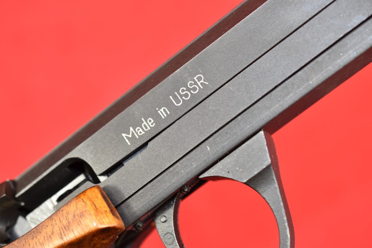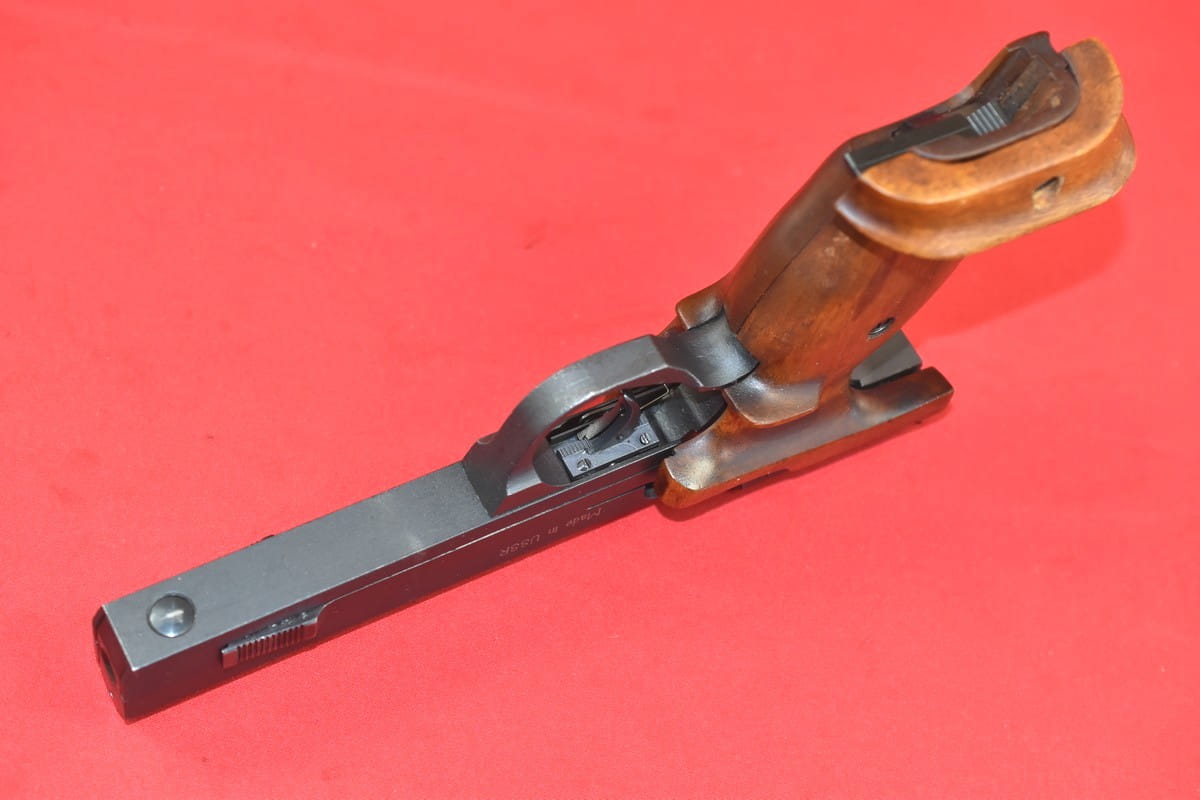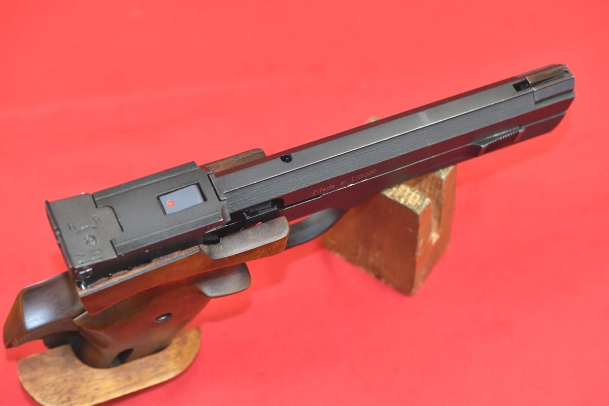 #6346 Pistolet sportowy bocznego zapłonu IŻ-35M kal. 22lr. Produkcja radziecka / rosyjska na rynek niemiecki - stąd walizka Walthera, z którą był już dystrybuowany w Niemczech (oraz w innych krajach europejskich).
