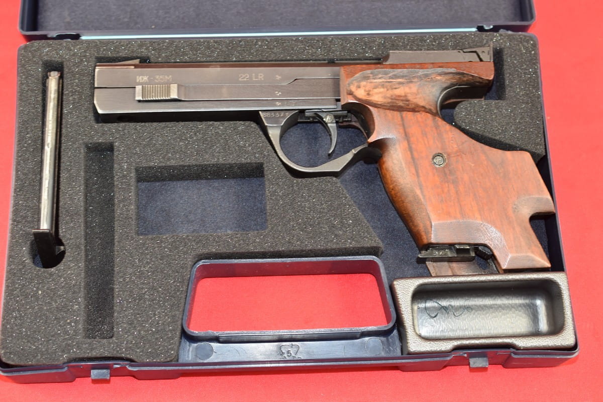 #6350 Pistolet sportowy bocznego zapłonu IŻ-35M kal. 22lr. Produkcja radziecka / rosyjska na rynek niemiecki - stąd walizka Walthera, z którą był już dystrybuowany w Niemczech (oraz w innych krajach europejskich).