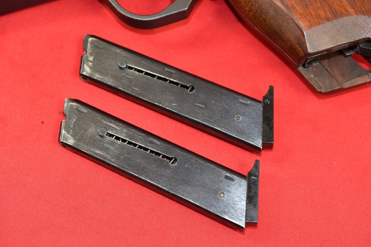 Przewód lufy idealny, lustro. W komplecie walizka i dwa magazynki. Rękojeść "podrzeźbiona" przez poprzedniego właściciela, by lepiej mu pasowała. Brak półki.