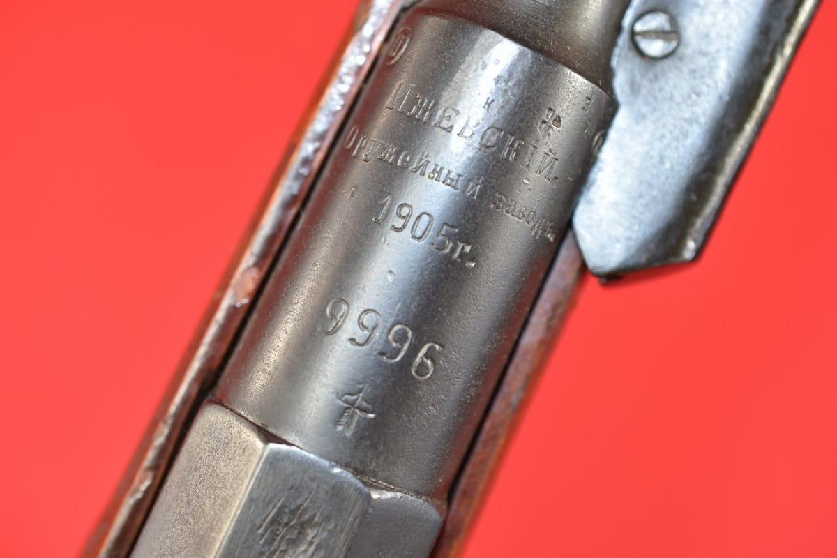 Oferowany egzemplarz powstał, tak jak wszystkie tego typu, poprzez przerobienie standardowego karabinu wz.1891 - w tym wypadku produkcji Iżewska z roku 1905.