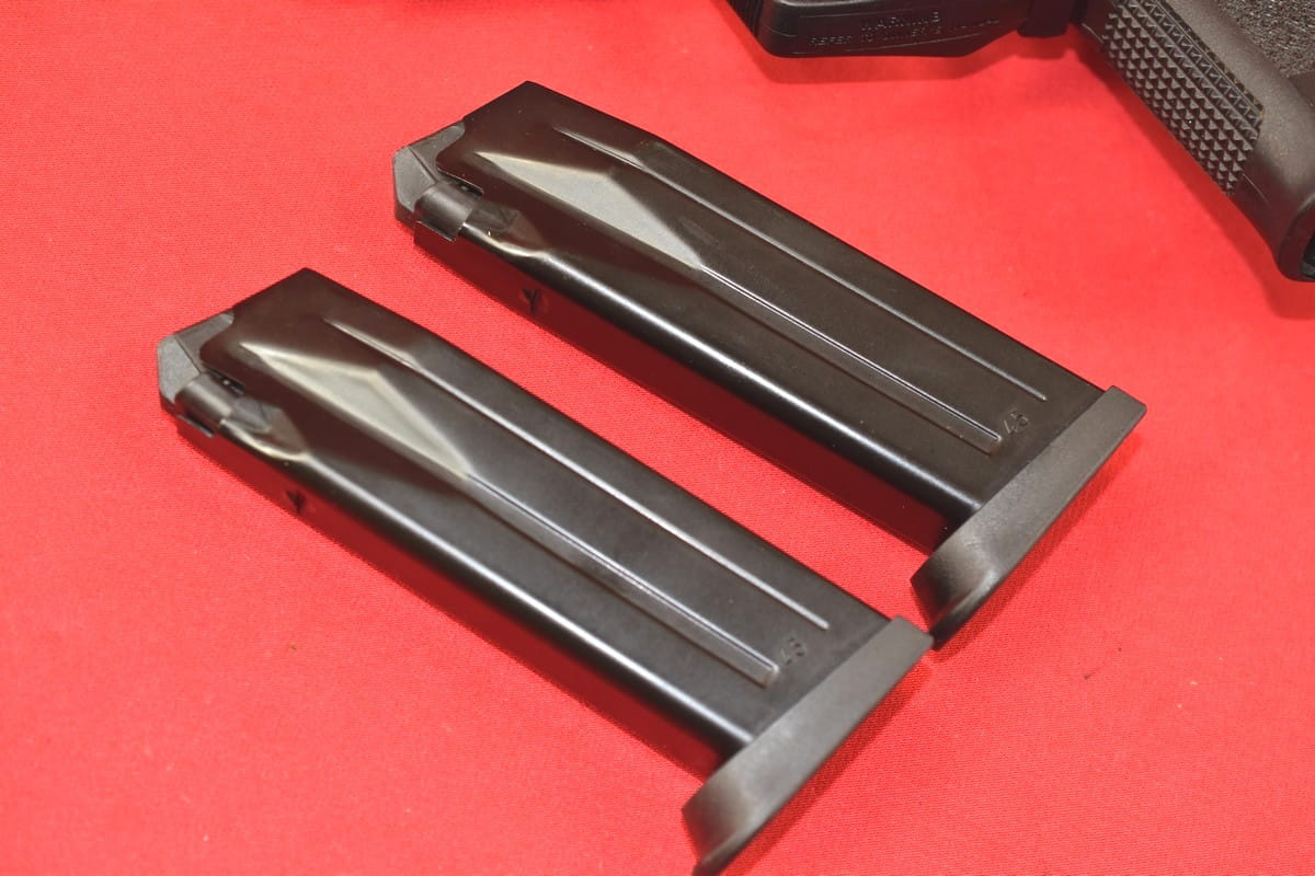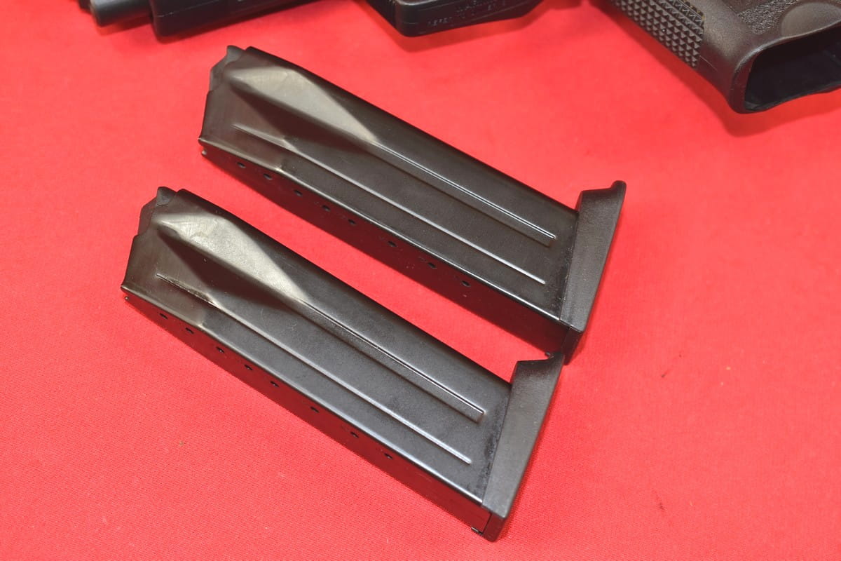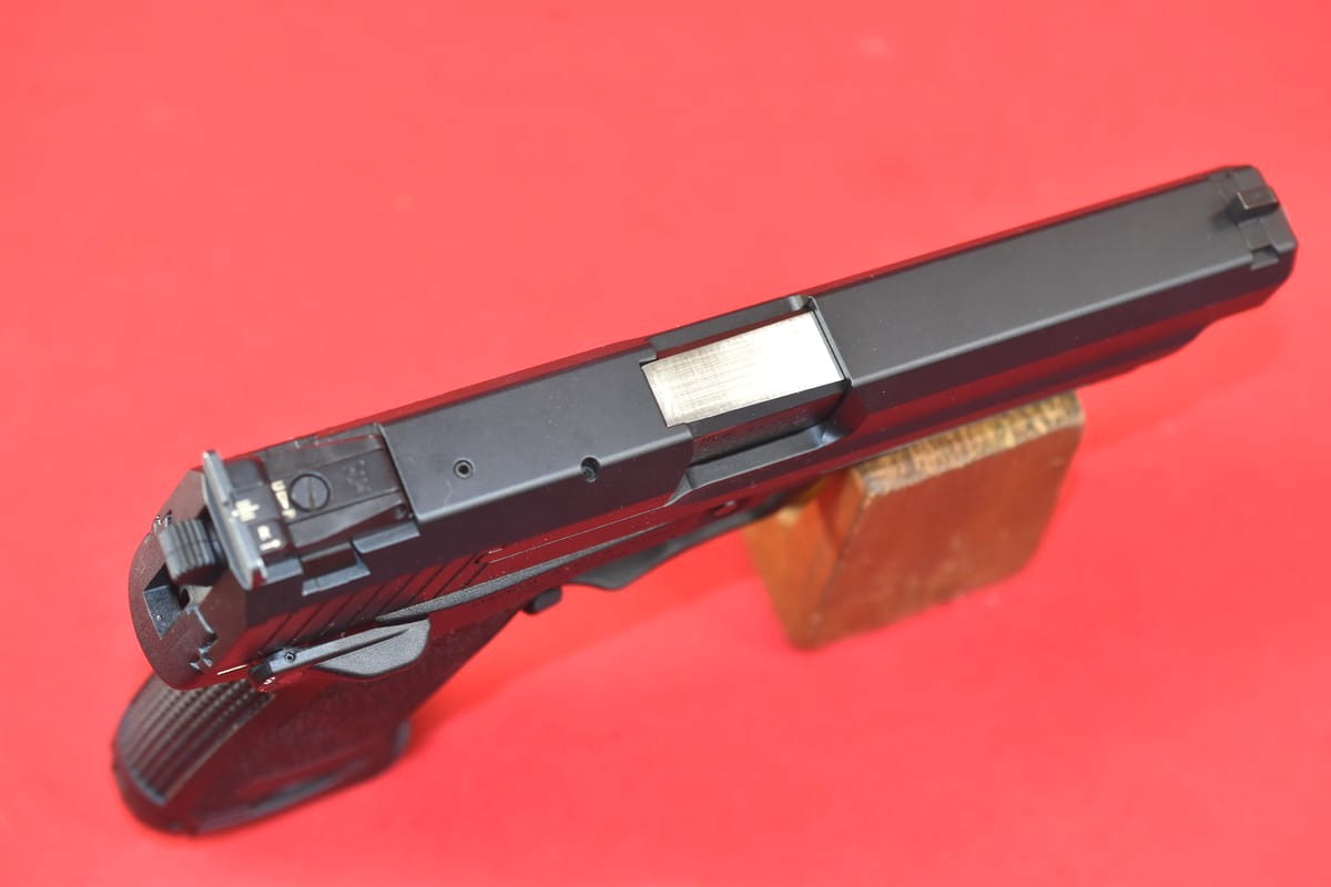 Piękny, lekko używany zestaw, bardzo dobrze utrzymany. W komplecie po dwa magazynki na każdy kaliber, instrukcja, karta przystrzelania fabrycznego, uchwyt (firmy Sickinger), oraz kilka części zamiennych widocznych na zdjęciach.