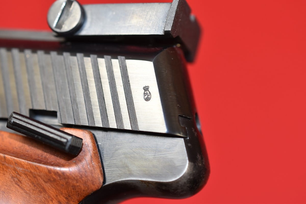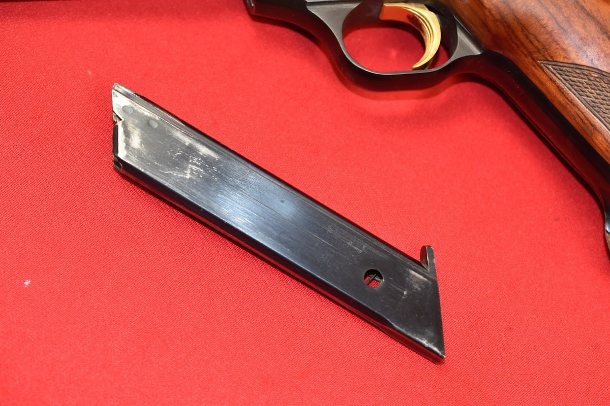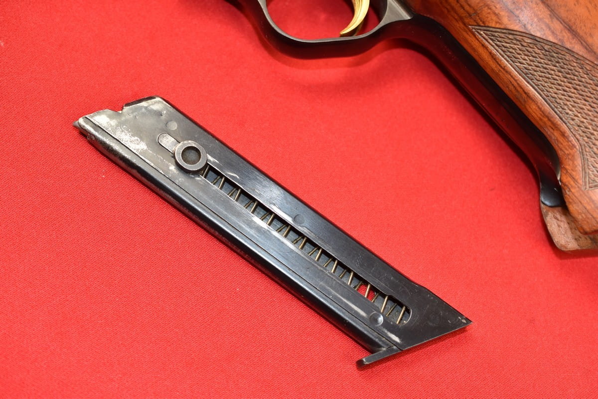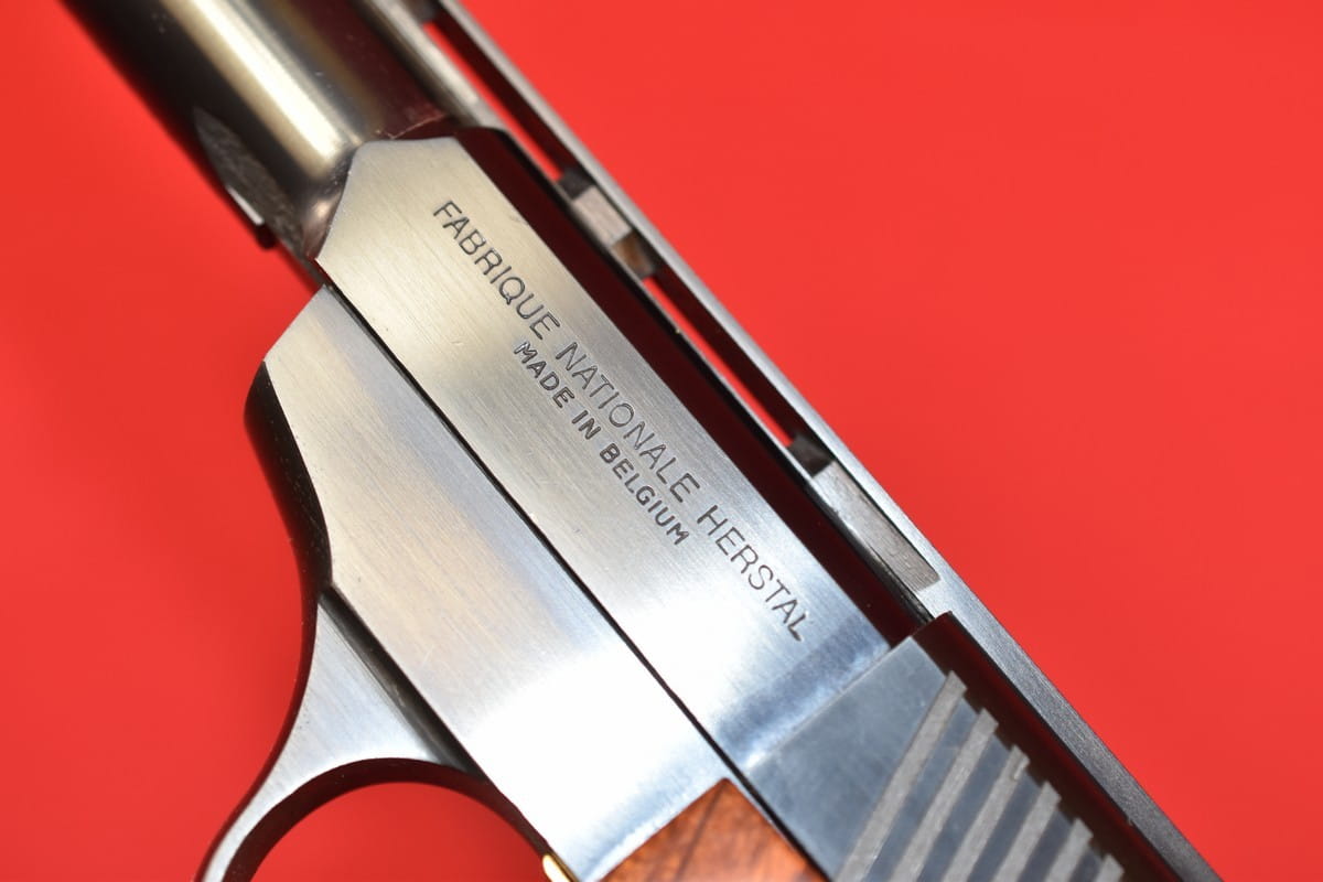 Magazynek 10 nabojowy. Klasyczny, solidny belgijski pistolet sportowy, wykonany w całości ze stali (za wyjątkiem okładzin oczywiście).