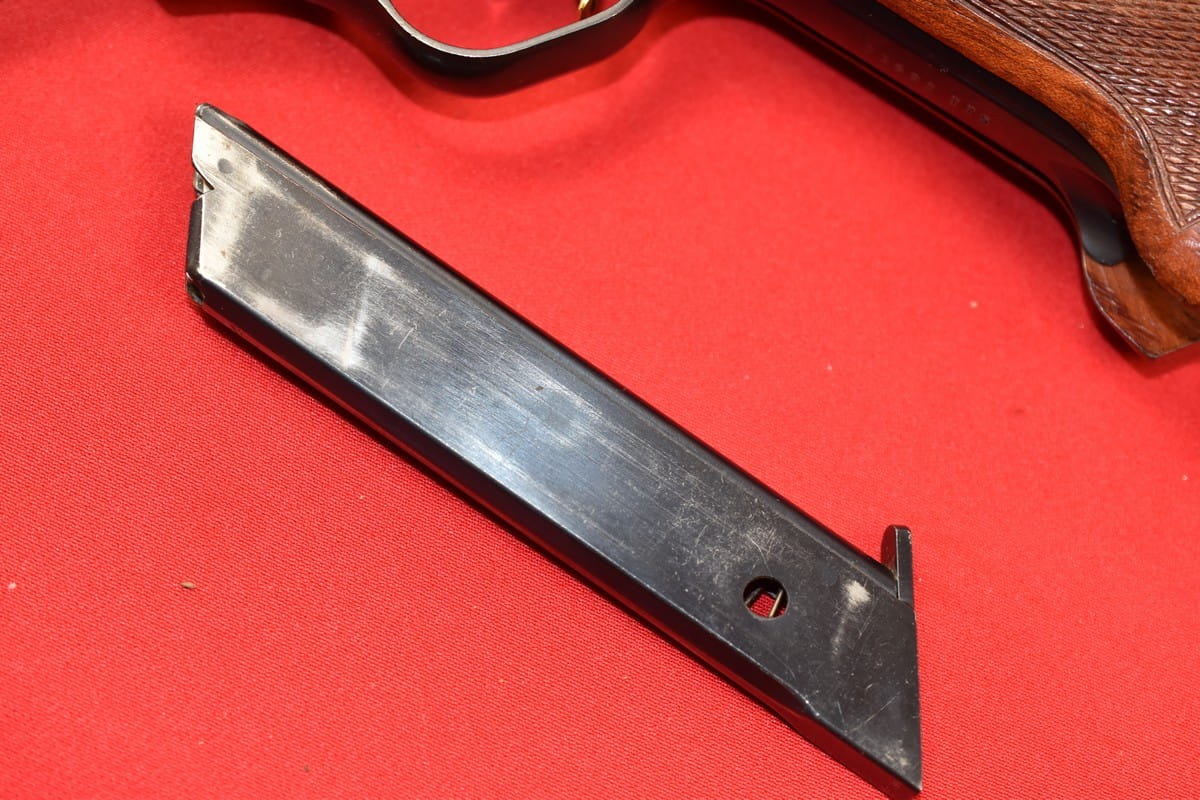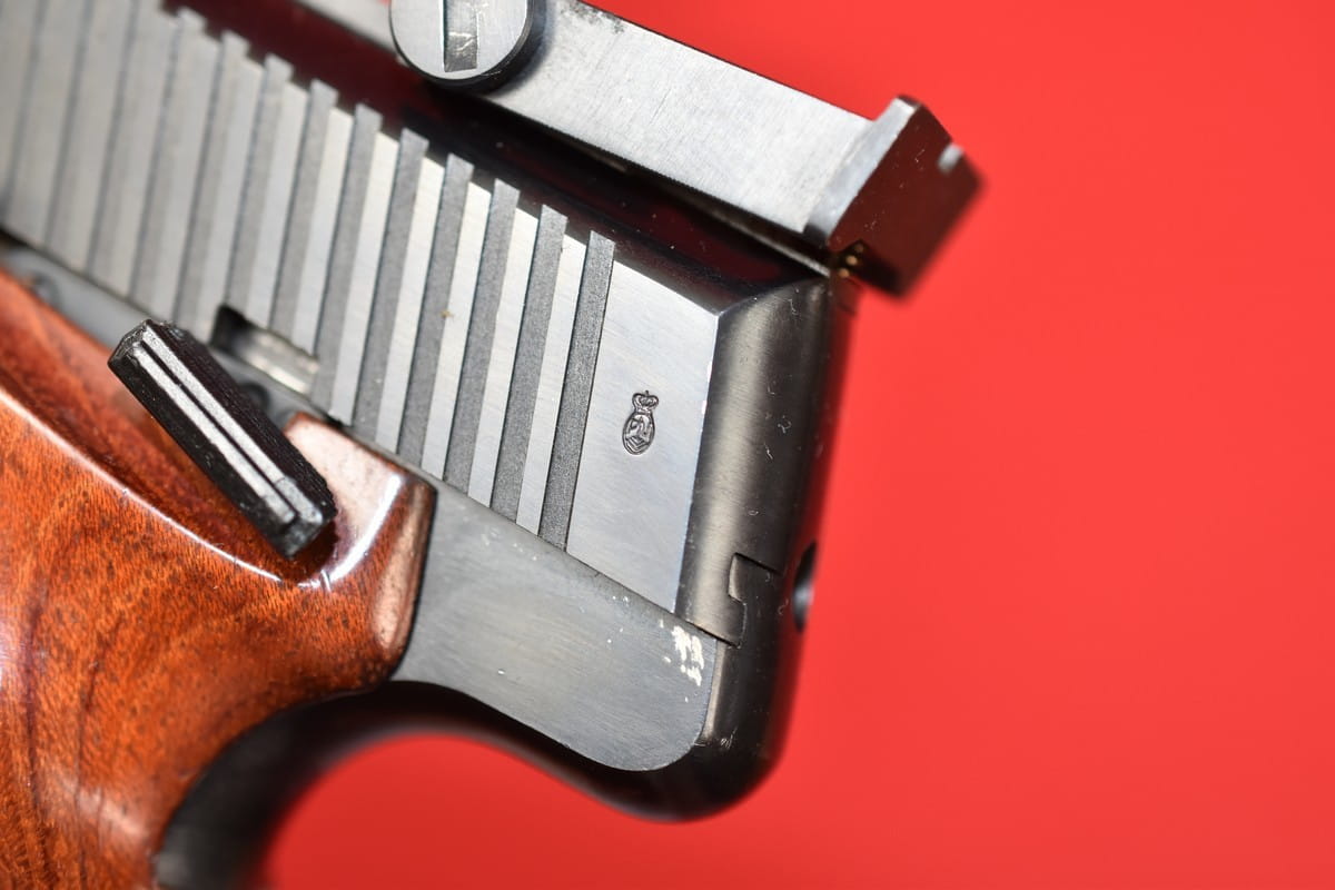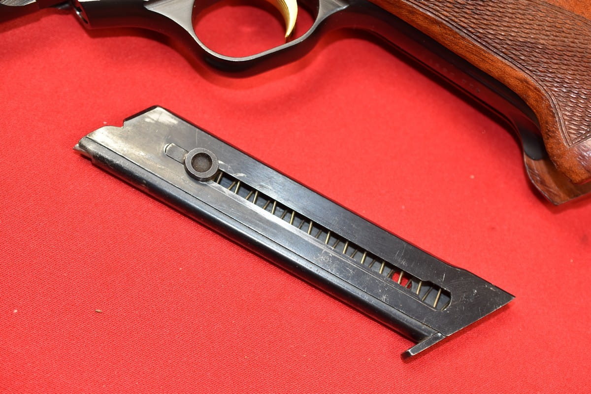 Magazynek 10 nabojowy. Klasyczny, solidny belgijski pistolet sportowy, wykonany w całości ze stali (za wyjątkiem okładzin oczywiście).
