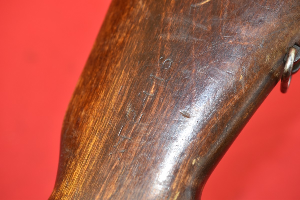 Oprócz stempli fabrycznych, posiada niefabrycznie powtórzony numer seryjny na komorze zamkowej (powyżej fabrycznego) - oraz dodatkowy stempel "AS". Być może są to jakieś próby oznaczenia i zalegalizowania znalezionej na polu bitwy broni.