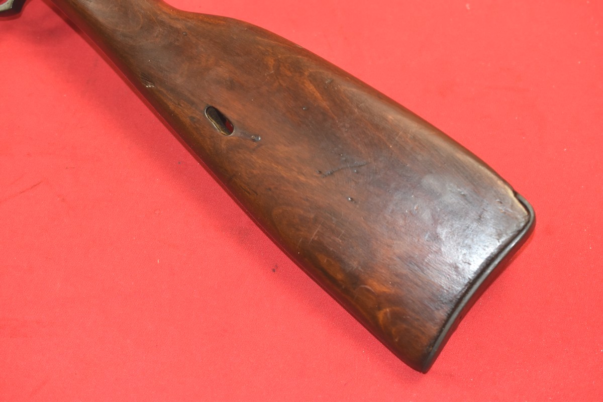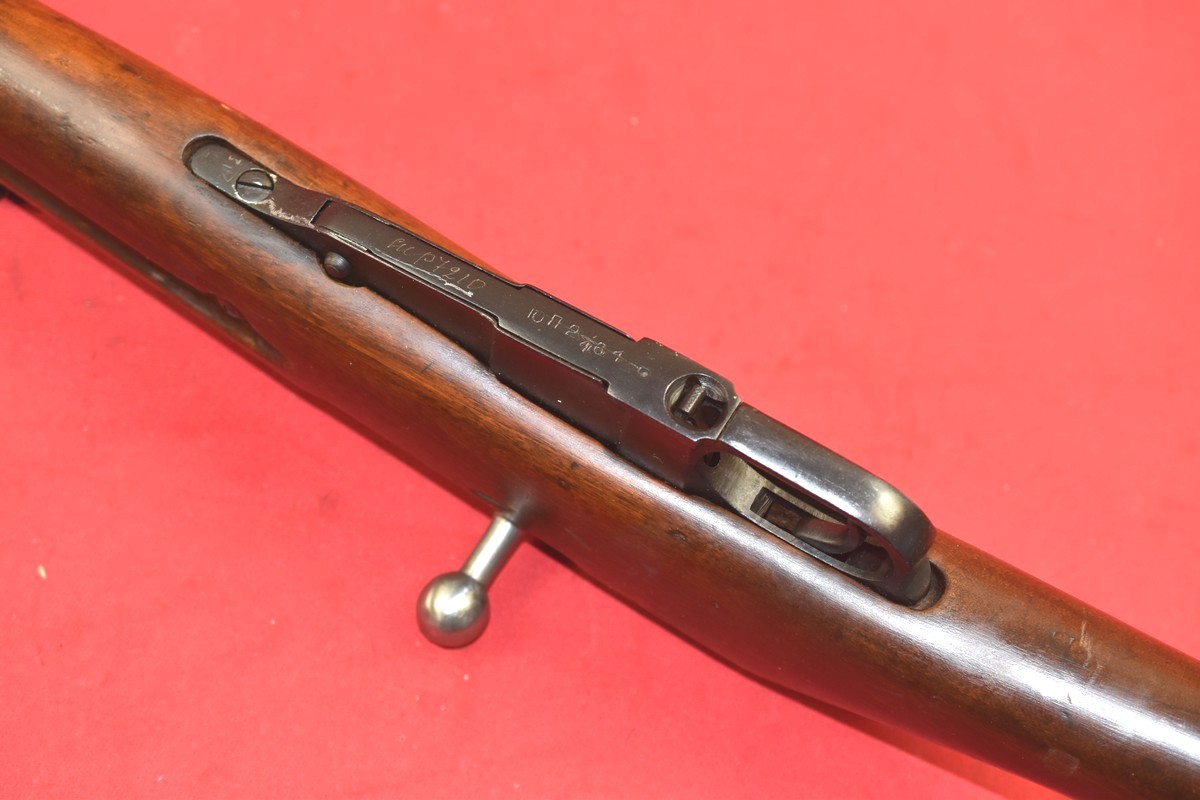 Oferowany egzemplarz - jak zresztą praktycznie wszystkie egzemplarze radzieckich Mosinów 91/30 dostępnych obecnie na rynku - przeszedł powojenny remont w arsenałach ZSRR. Typową cechą takich remontów bywa: wymuszona numeracja, części numerowane elektropisem, wtórna oksyda, kolba produkcji powojennej - lub przeszlifowana i powtórnie pokryta szelakiem kolba oryginalna.