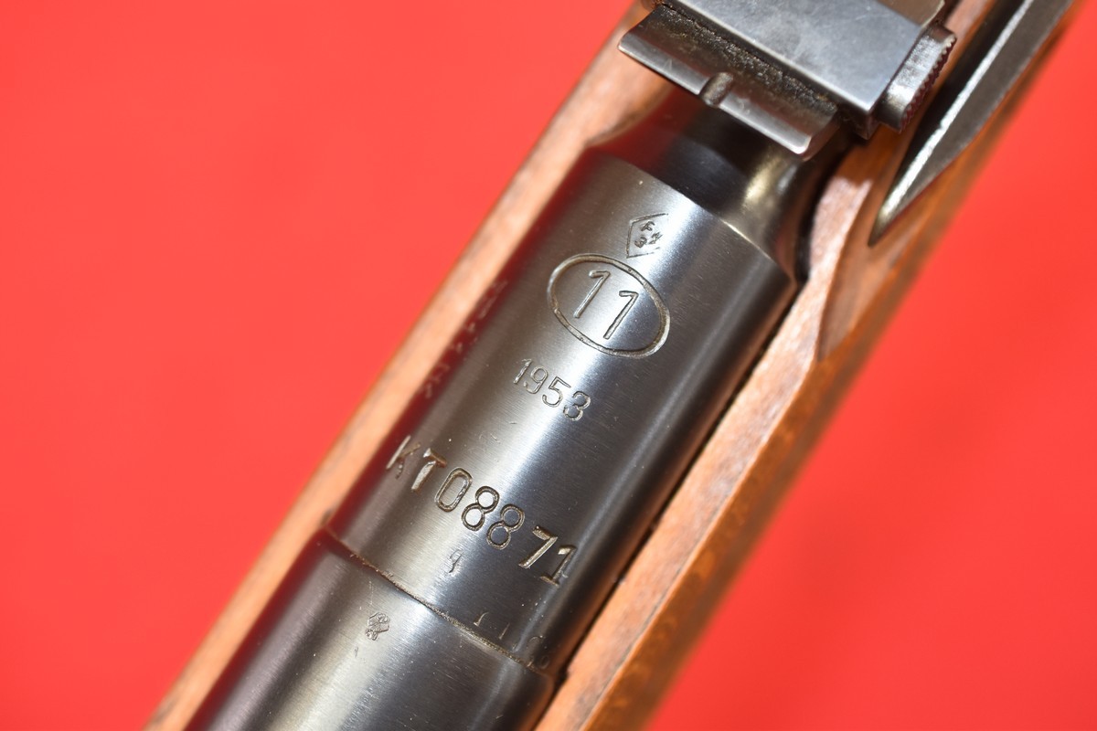 Egzemplarz zgodny numerycznie, kompletny, w oryginalnej, fabrycznej oksydzie. Kolba bez żadnego szlifowania, bez uszkodzeń, bez napraw.