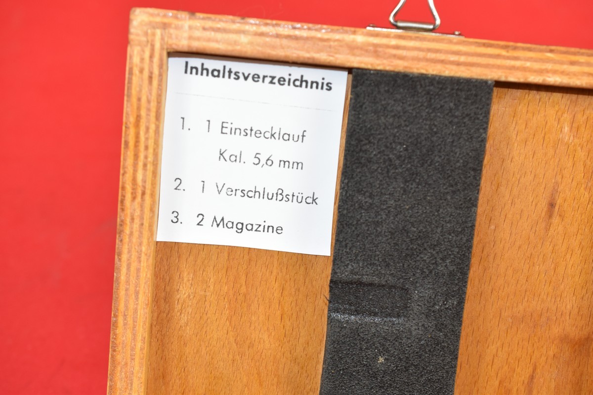 Egzemplarz przeznaczony dla Bundesgrenzschutz - o czym świadczą widoczne na zamku odbiory techniczne stosowane w broni wojskowej i policyjnej ("Güteprüfdienst des Bundesverteidigungsministeriums") - oraz stempel "BMI" (Bundesministerium des Inneren - Ministerstwo Spraw Wewnętrznych).