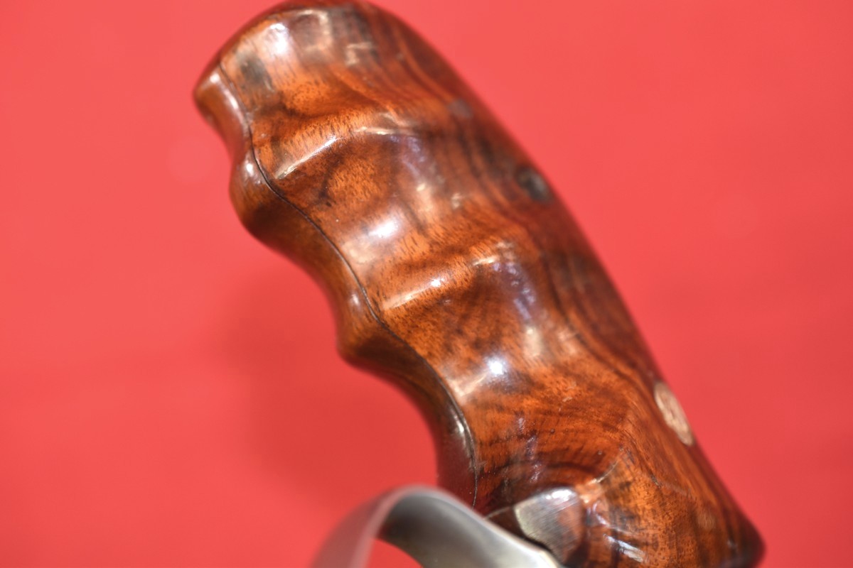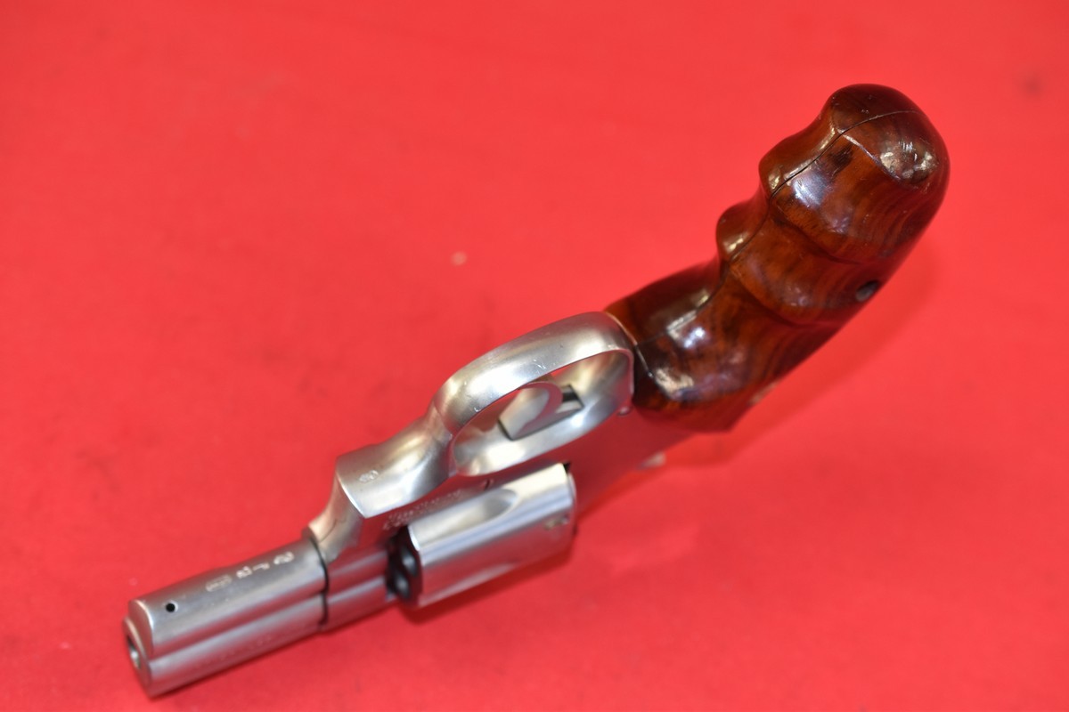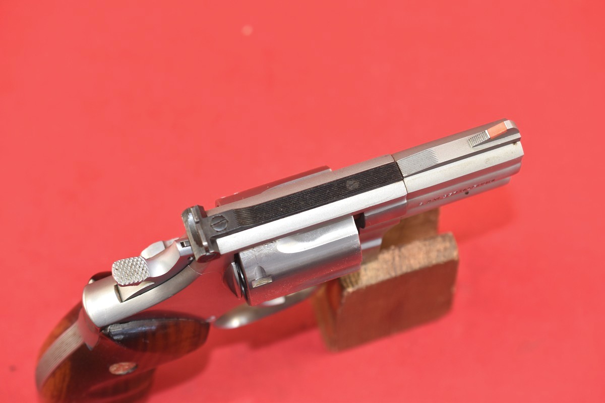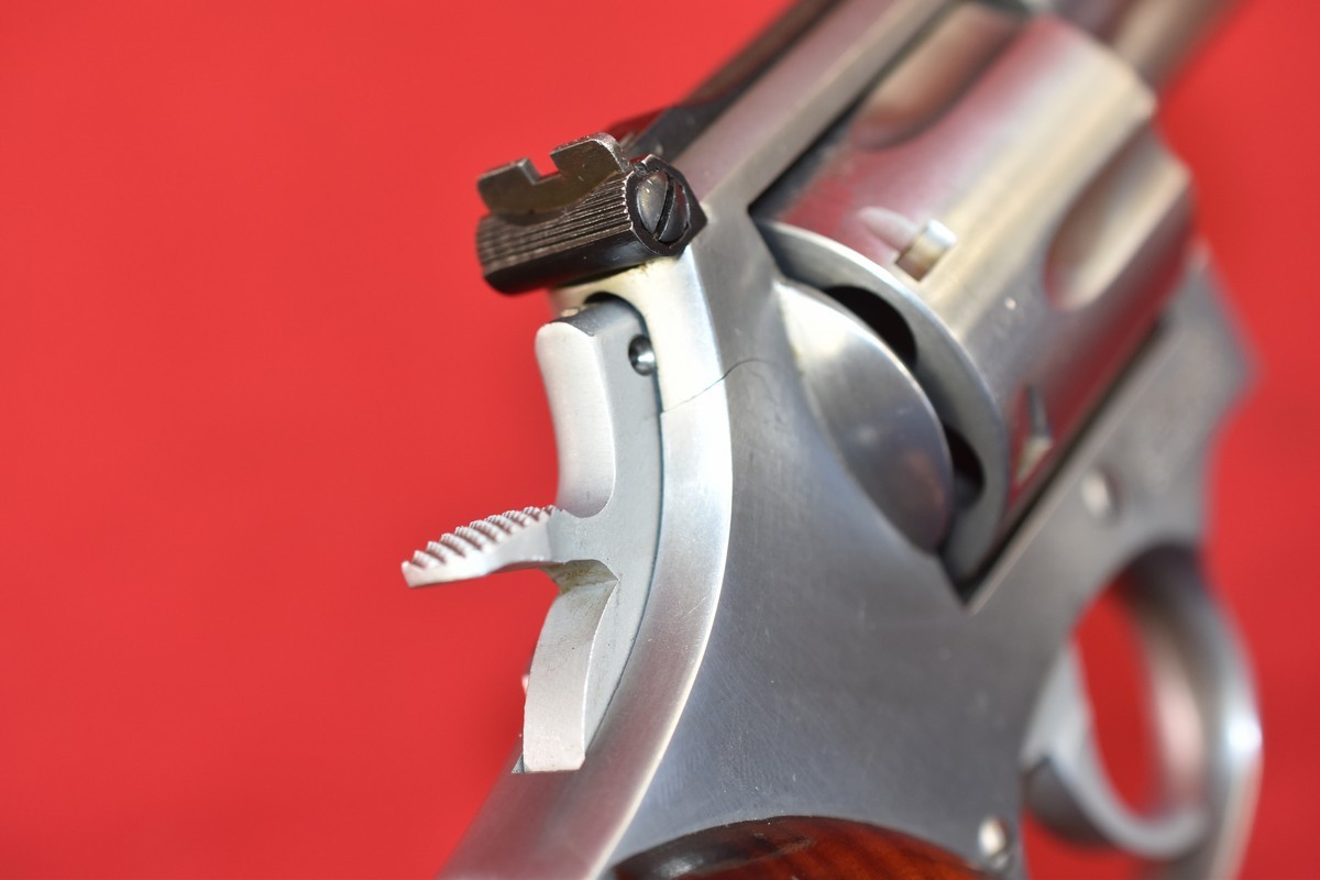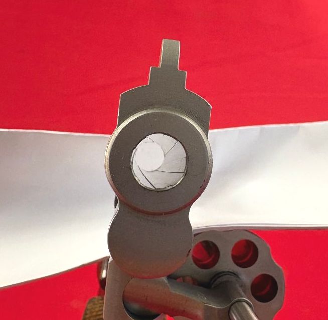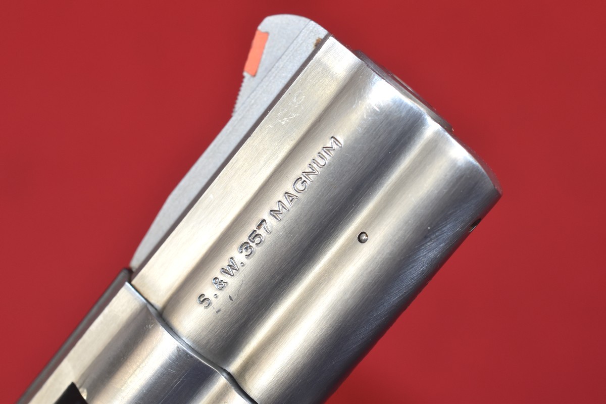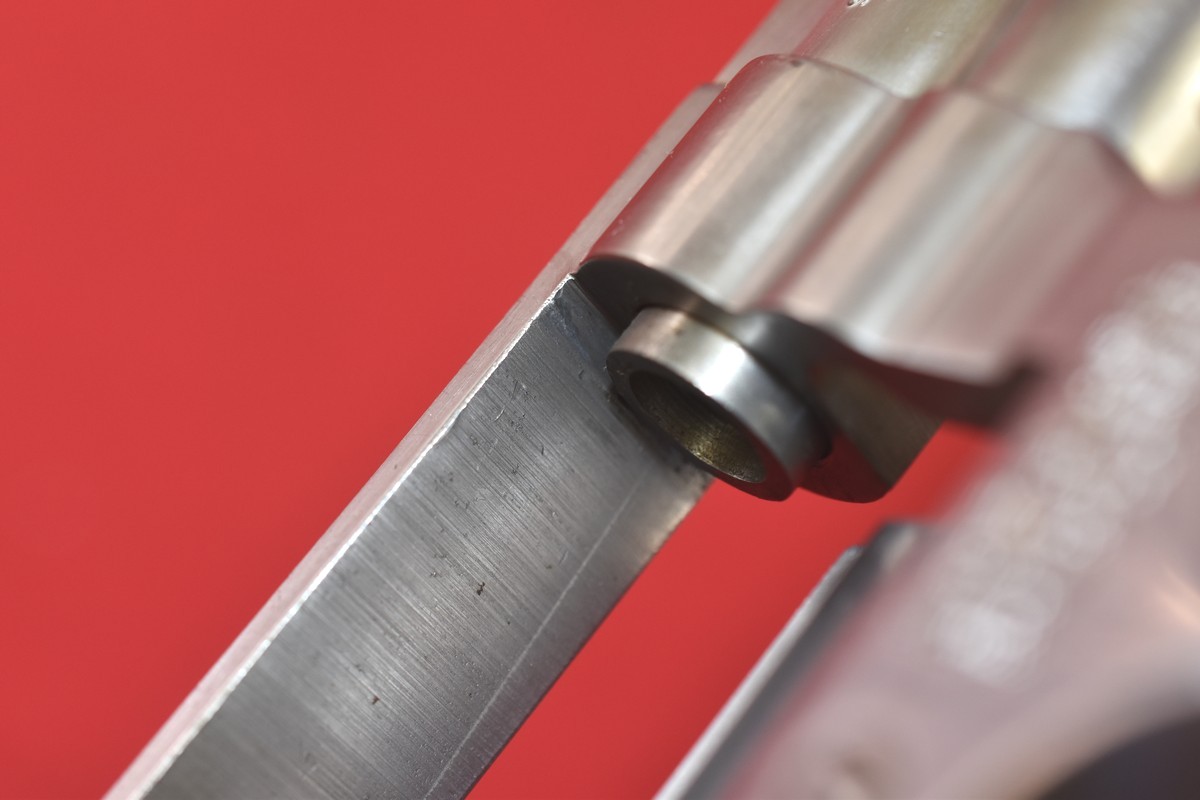 Mało używany egzemplarz, w bardzo dobrym stanie. O jego stanie świadczy stan ramy w pobliżu wlotu lufy - nie ma na niej śladu wypalenia od strzelania amunicją .357 Magnum. W mocno eksploatowanych egzemplarzach najpierw pojawia się tam ciemny kolor, a potem tworzy się wyraźnie widoczna i wyczuwalna palcem bruzda. Tutaj - patrz zdjęcia.