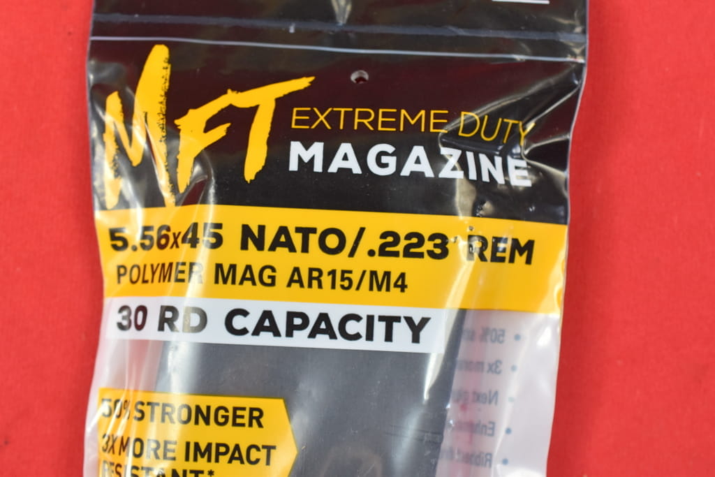 Magazynek MFT charakteryzuje się zwiększoną wytrzymałością i trwałością, dzięki polimerowej konstrukcji z długimi włóknami szklanymi nowej generacji. Magazynek przystosowany jest do amunicji w kalibrze 5,56 x 45 mm/.223.