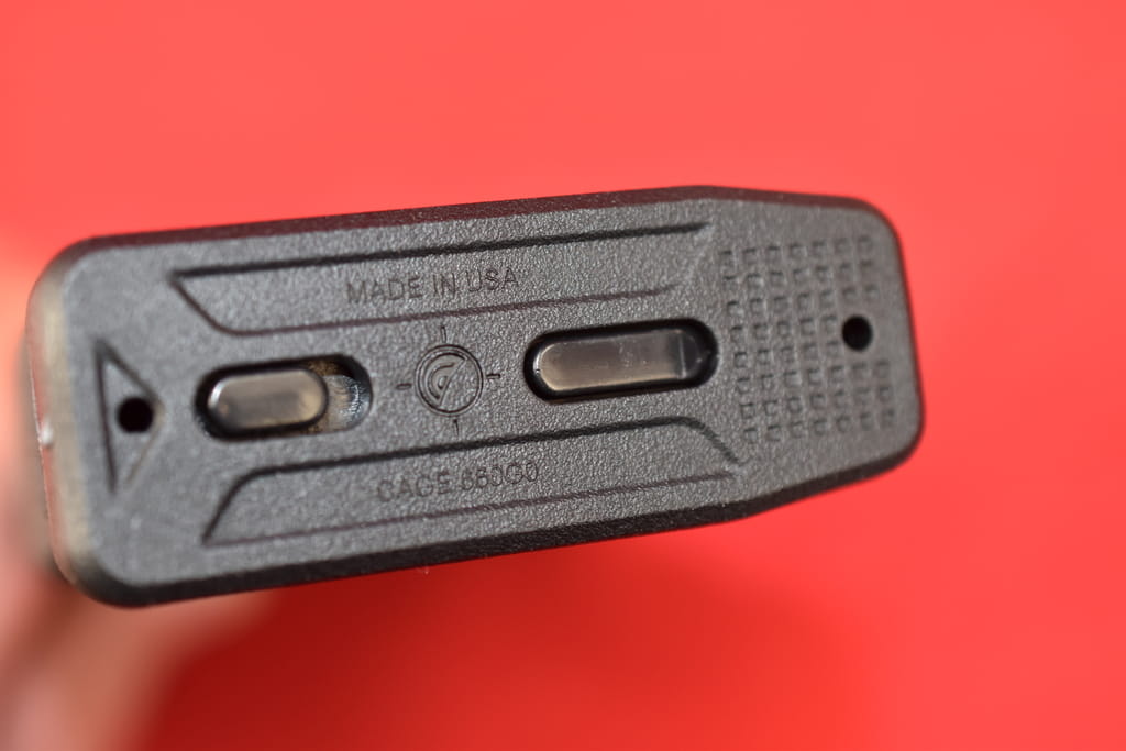 Na frontowej części magazynka umieszczono żebrowanie i teksturowanie, które zapewniają pewny chwyt nawet mokrymi bądź zabrudzonymi dłońmi.