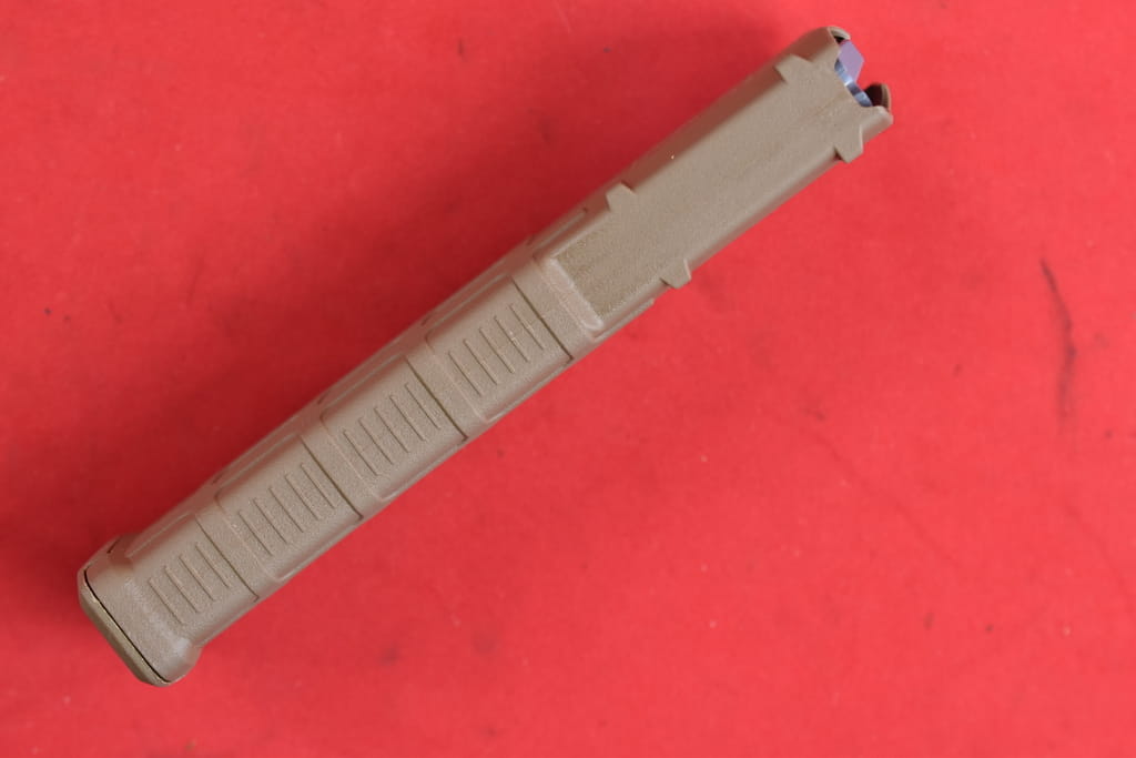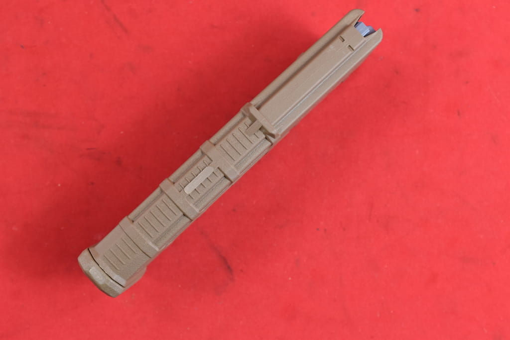 Bardziej agresywne niż w poprzedniej wersji teksturowanie poprawia chwyt mokrej lub brudnej dłoni. Producent wyszedł naprzeciw klientom, umieszczając w dolnej części system wgłębień ułatwiających opisywanie magazynków flamastrem.